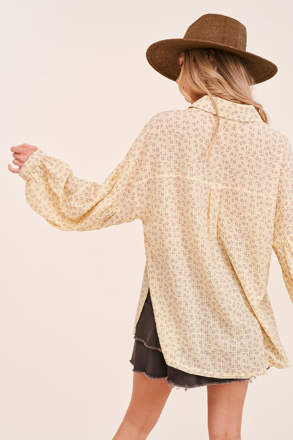 Balloon sleeves with button and band closure, raw edge detail throughout