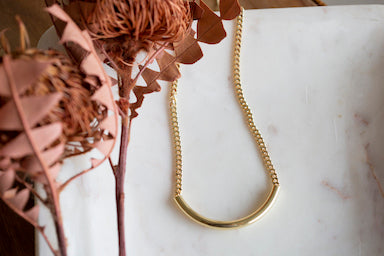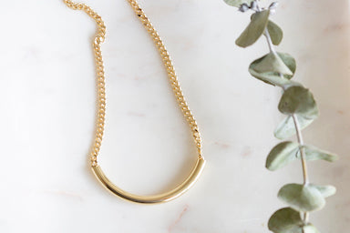 Gold Long Tube on Curb Chain